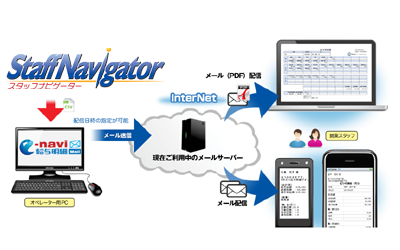 e-navi給与明細とは、給与明細書をメール配信するシステムです。